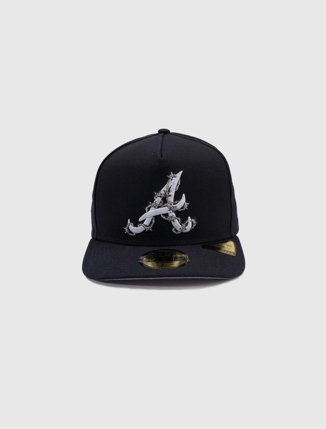 Show off your team spirit with the Atlanta Braves Fence Exclusive A-Frame 59FIFTY Fitted Hat. This hat not only features a raised embroidered team logo, but also unique fence graphics that make a bold and stylish statement. Represent your team in style with this one-of-a-kind hat.